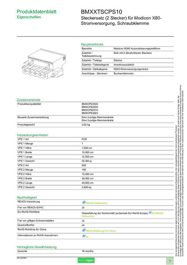 BMXXTSCPS10 Moduł rozszerzeń Schneider Electric BMXXTSCPS10