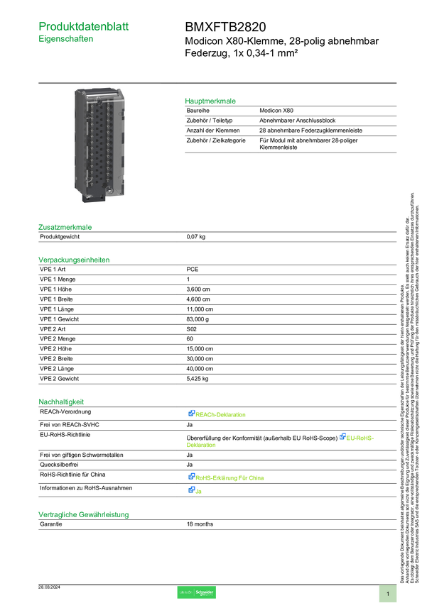 BMXFTB2820 Moduł rozszerzeń Schneider Electric BMXFTB2820