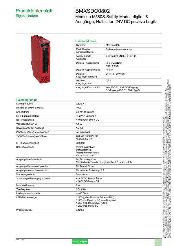 Moduł rozszerzeń Schneider Electric BMXSDO0802