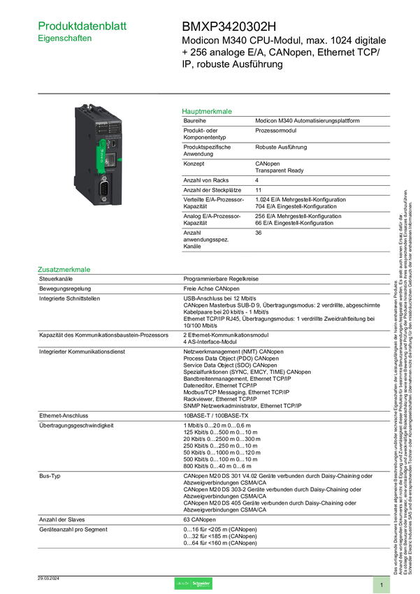 BMXP3420302H Moduł rozszerzeń Schneider Electric BMXP3420302H