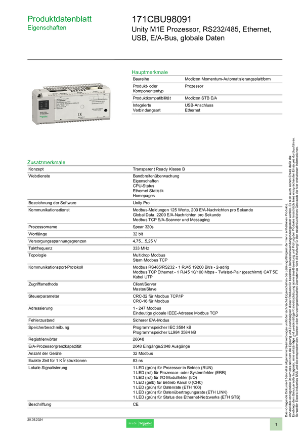 171CBU98091 Moduł rozszerzeń Schneider Electric 171CBU98091