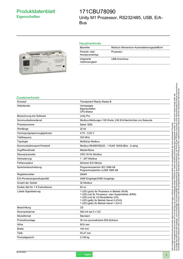 171CBU78090 Moduł rozszerzeń Schneider Electric 171CBU78090