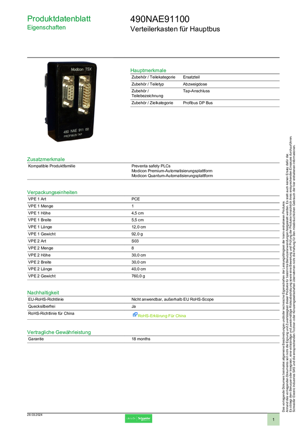 490NAE91100 Moduł rozszerzeń Schneider Electric 490NAE91100
