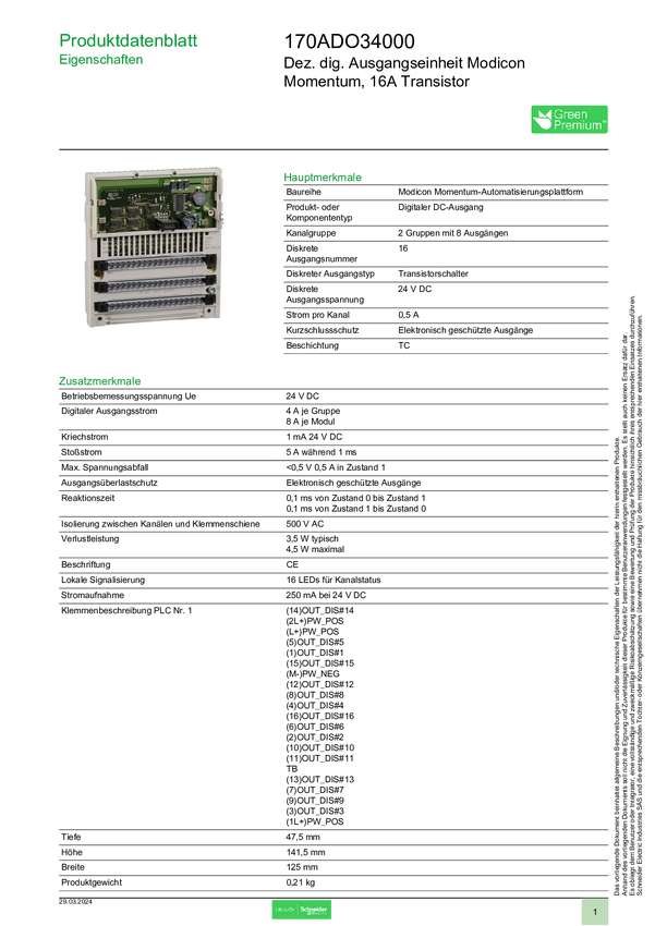 170ADO34000 Moduł rozszerzeń Schneider Electric 170ADO34000