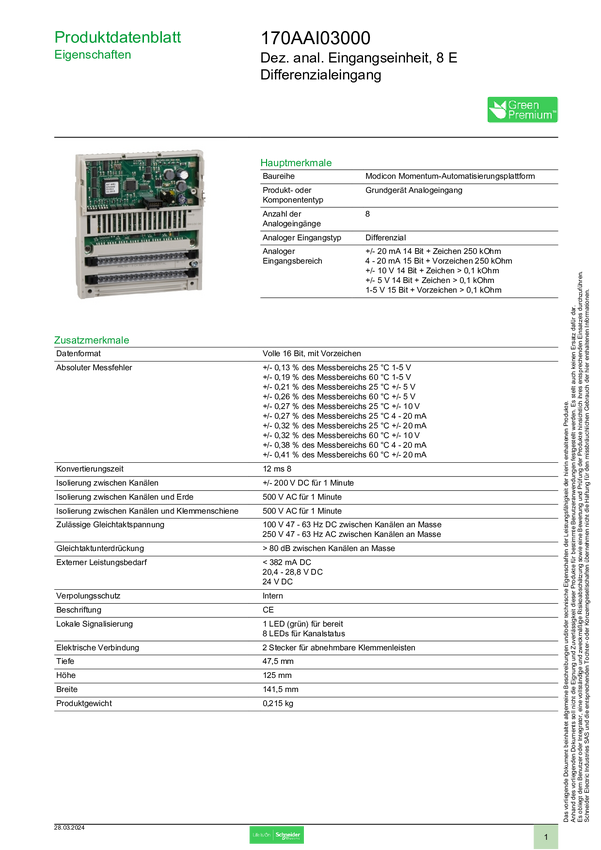 170AAI03000 Moduł rozszerzeń Schneider Electric 170AAI03000 170AAI03000