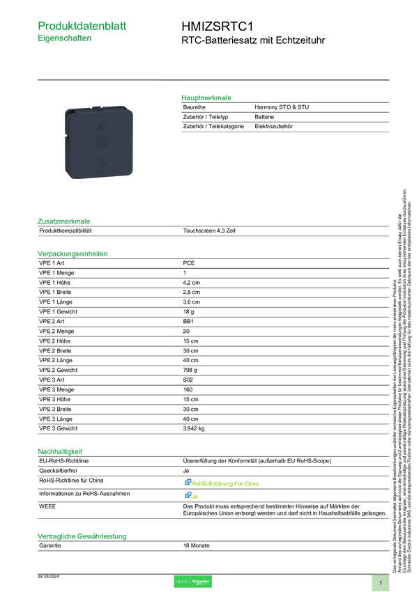 HMIZSRTC1 Moduł rozszerzeń Schneider Electric HMIZSRTC1