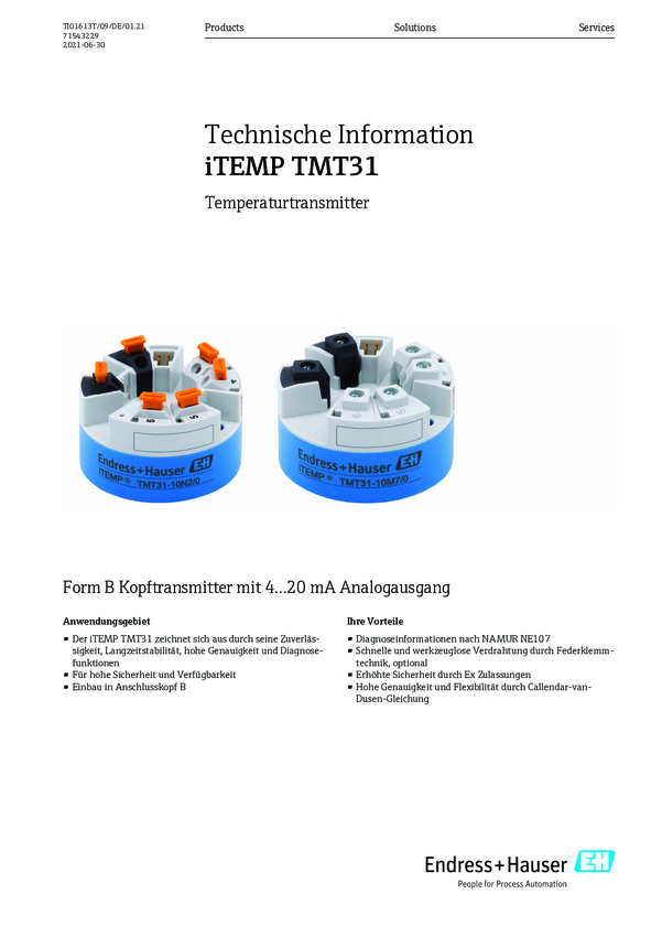 TMT31-URA1A1A1PA Przetwornik temperatury iTEMP wejście pomiarowe RTD 4-20 mA Endress+Hauser...