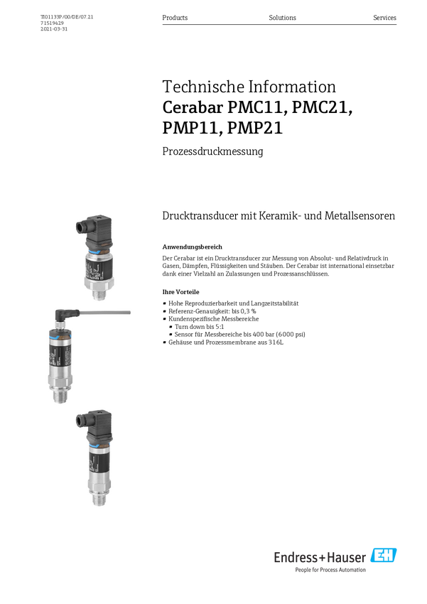 PMC11-AA2L1PBWTJA Endress+Hauser PMC11-AA2L1PBWTJA Czujnik ciśnienia 1 szt. -1 bar do 10 bar...