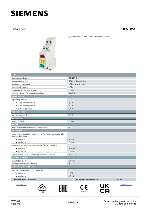 5TE58121 Siemens 5TE5812-1 Lampka sygnalizacyjna 1 szt.
