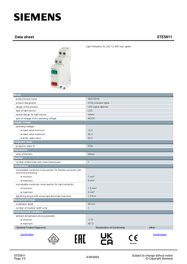 Siemens 5TE5811 Lampka sygnalizacyjna 1 szt.