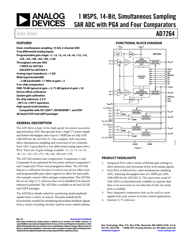 AD7264-5 AD7264: True Differential, Dual, 1 MSPS, 14-Bit/12-Bit, 2-Channel SAR ADC...
