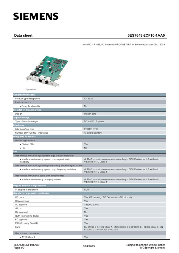 6ES76482CF101AA0 Siemens 6ES7648-2CF10-1AA0 Zestaw rozwojowy PLC