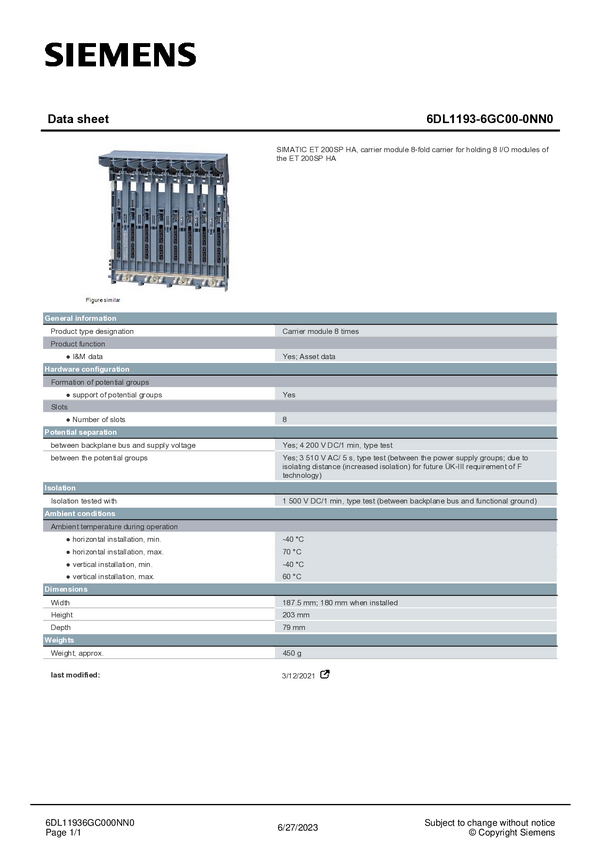 Pałąk montażowy PLC Siemens 6DL1193-6GC00-0NN0 6DL11936GC000NN0