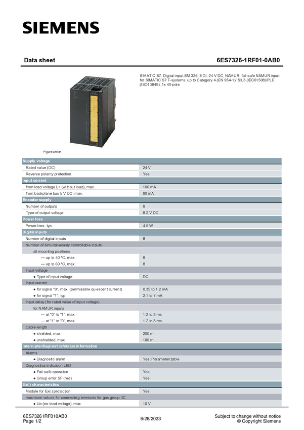 Moduł wejściowy PLC Siemens 6ES7326-1RF01-0AB0 6ES73261RF010AB0