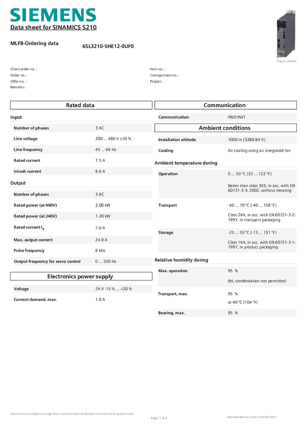 Przemiennik częstotliwości Siemens 6SL3210-5HE12-0UF0