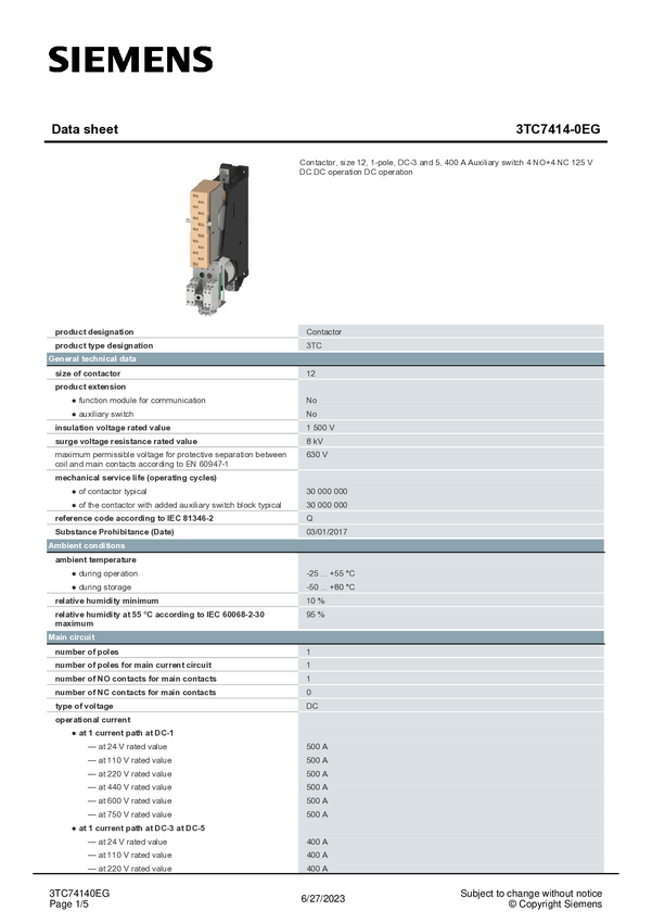 Stycznik Siemens 3TC7414-0EG 3TC74140EG, 1 szt.