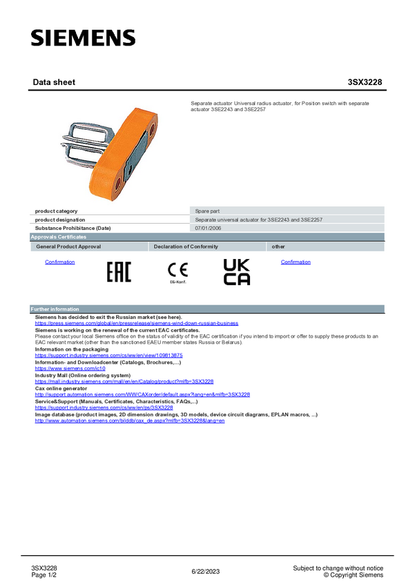Siemens 3SX3228 Aktuator 3SX3228, 1 szt.