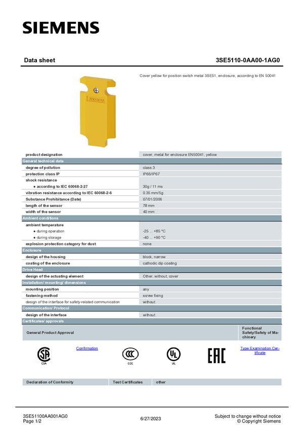 3SE51100AA001AG0 Siemens 3SE51100AA001AG0 3SE5110-0AA00-1AG0 Pokrywa 1 szt.