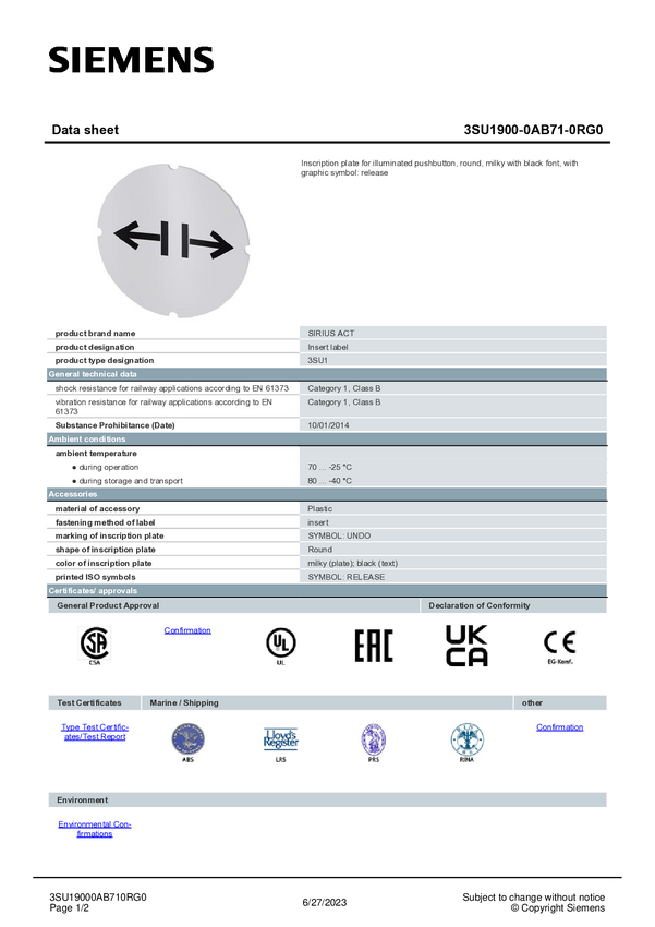 3SU19000AB710RG0 Tablica opisowa Siemens 3SU1900-0AB71-0RG0 10 szt.