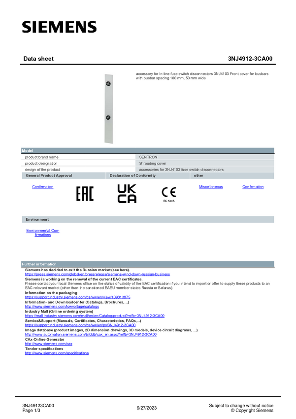 3NJ49123CA00 Zestaw akcesoriów Siemens 3NJ4912-3CA00 1 szt.