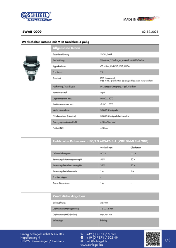 SWAII_C009 Schlegel SWAII_C009 Przełącznik ścienny 1 szt.