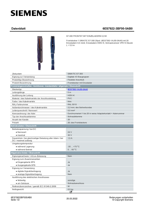 6ES79223BF005AB0 Siemens 6ES7922-3BF00-5AB0 6ES79223BF005AB0 Wtyczka przednia PLC 30 V
