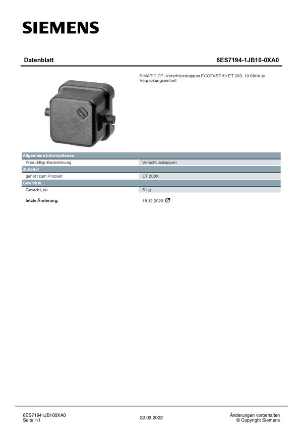 6ES71941JB100XA0 Siemens 6ES71941JB100XA0 6ES7194-1JB10-0XA0 Nasadka PLC