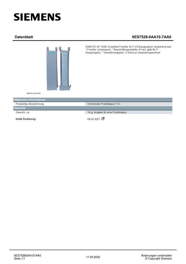 Pokrywa PLC Siemens 6ES7528-0AA10-7AA0 6ES75280AA107AA0