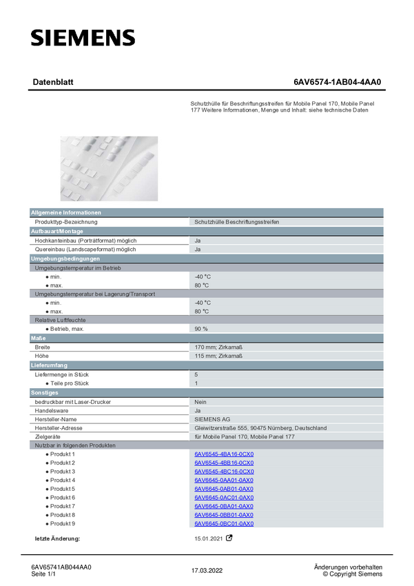 6AV65741AB044AA0 Tuleja ochronna PLC Siemens 6AV6574-1AB04-4AA0 6AV65741AB044AA0