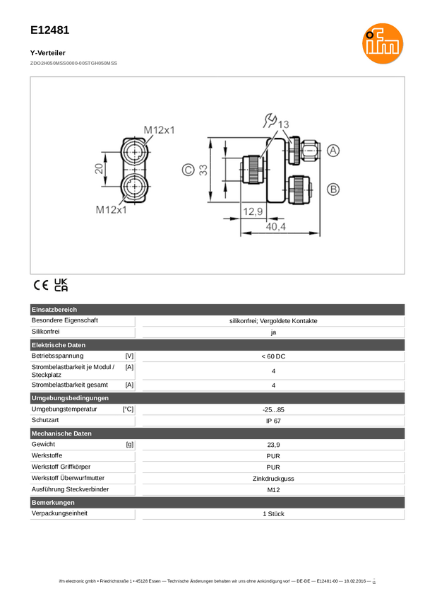 E12481 ifm Electronic E12481 Linia dystrybucyjna E12481, piny: 5, 5, 1 szt.