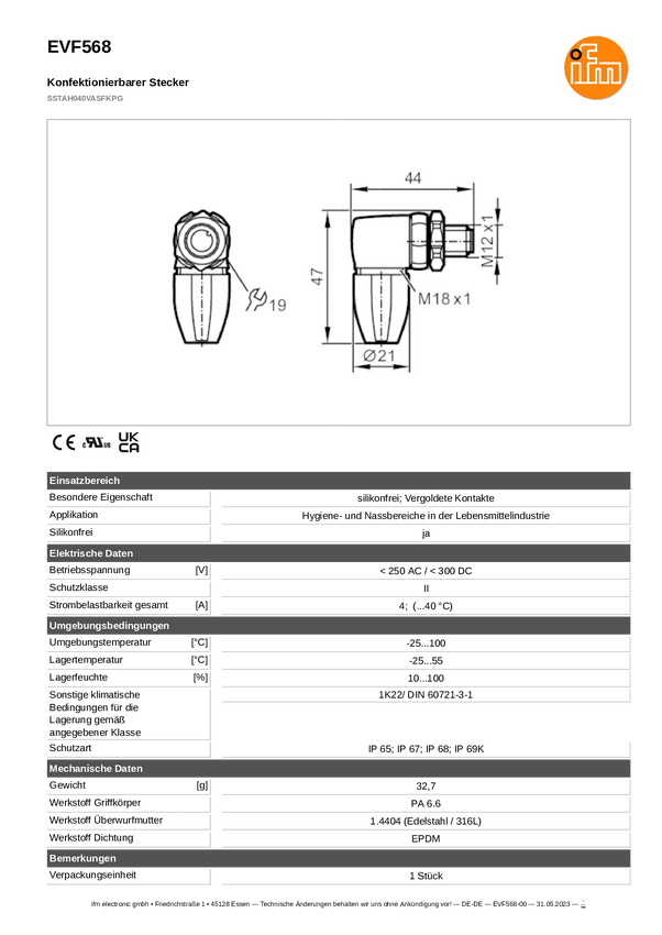 EVF568 ifm Electronic EVF568 Złącze niekonfekcjonowane czujnika/aktuatora złąc...