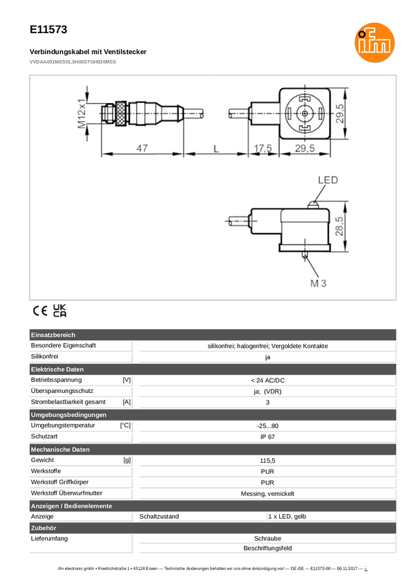 E11573 Złącze E11573 E11573 ifm Electronic Zawartość: 1 szt.