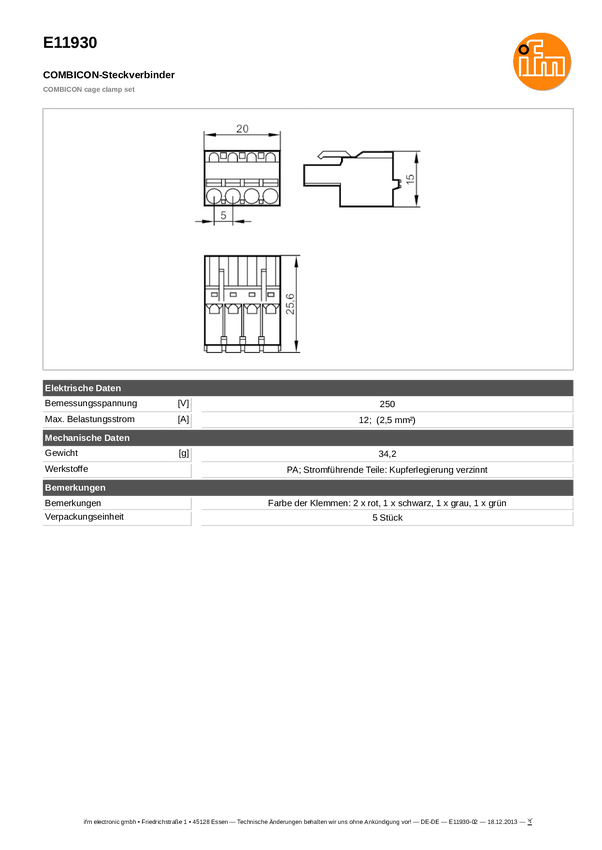 E11930 ifm Electronic E11930 Wtyczka COMBICON E11930, 5 szt.