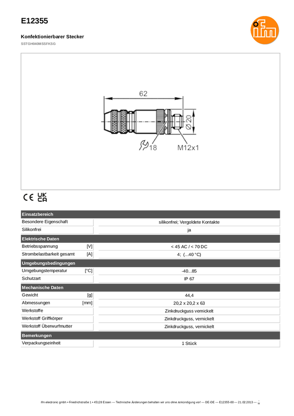 E12355 ifm Electronic E12355 Złącze niekonfekcjonowane czujnika/aktuatora E123...