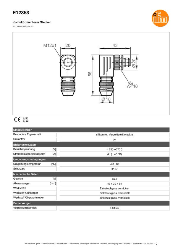 E12353 ifm Electronic E12353 Złącze niekonfekcjonowane czujnika/aktuatora E123...