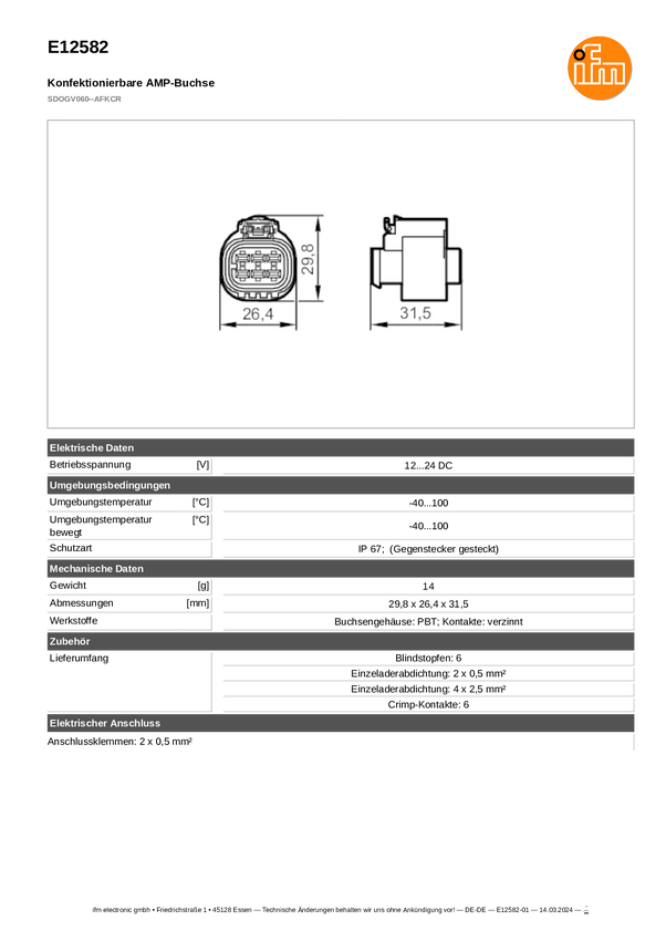 E12582 ifm Electronic E12582 Złącze niekonfekcjonowane czujnika/aktuatora złąc...