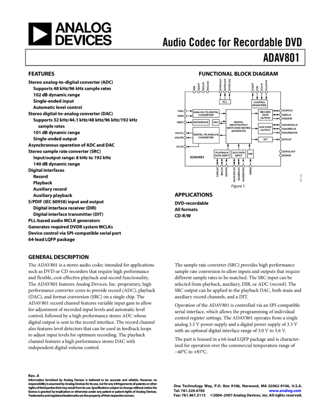 ADAV801 Audio Codec for Recordable DVD