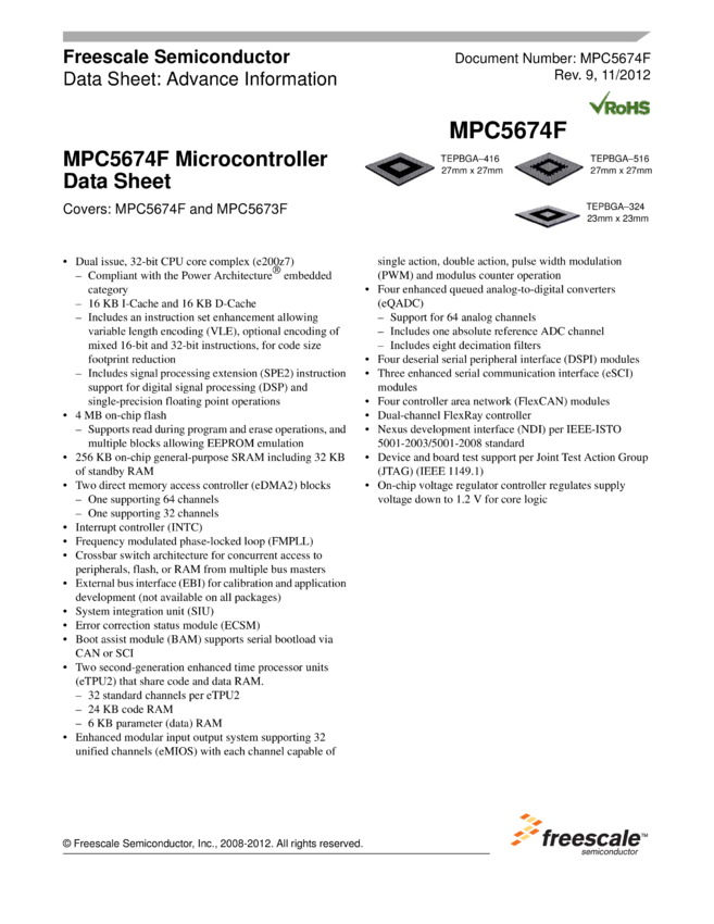 MPC5674F Qorivva 32-bit MCU for Powertrain Applications