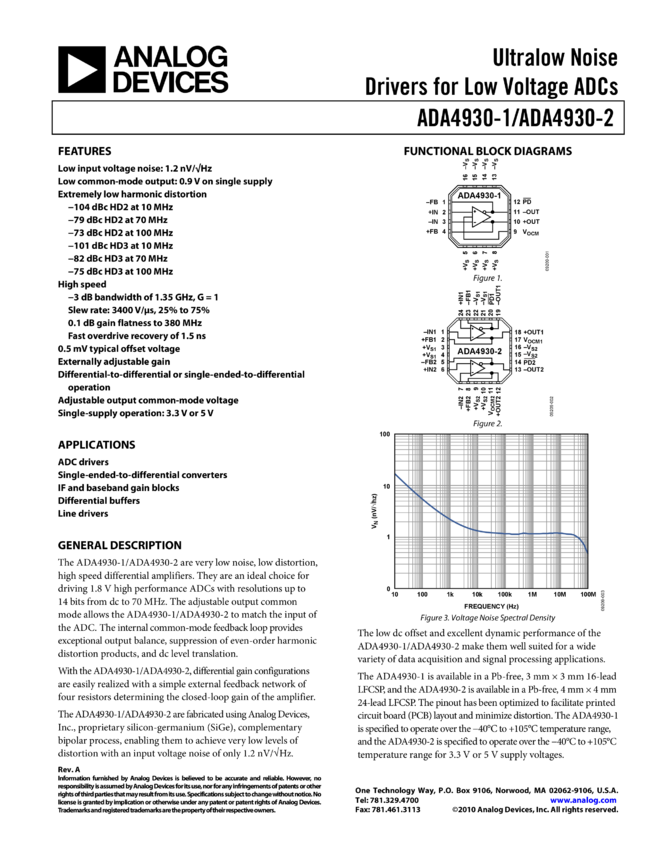 ADA4930-2 Ultralow Noise Drivers for Low Voltage ADCs