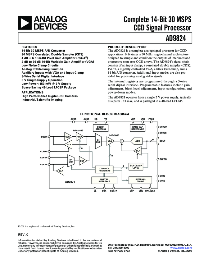 AD9824: Complete 14-Bit 30 MSPS CCD Signal Processor