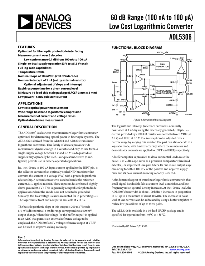ADL5306: 60 Low-Cost Logarithmic Converter