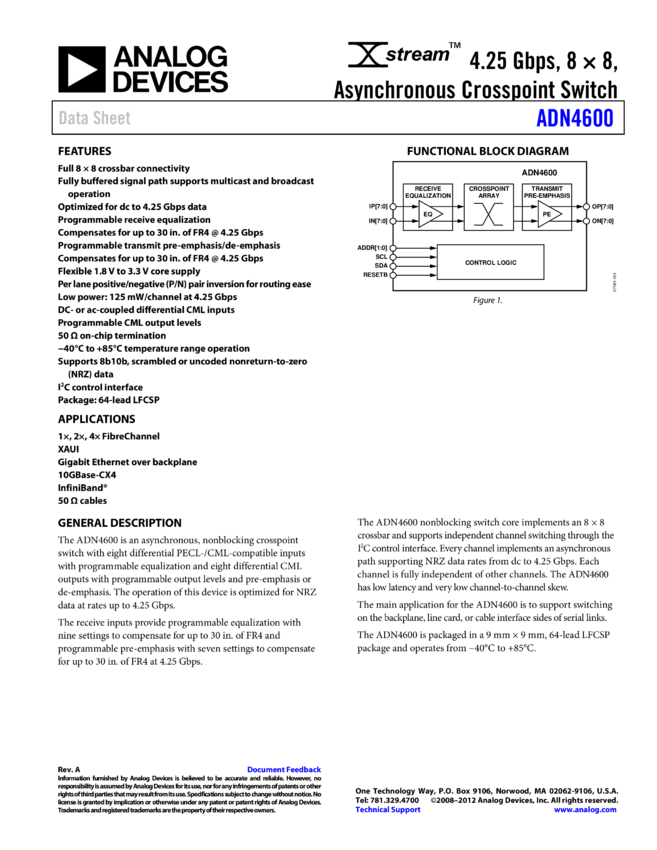 ADN4600: X-Stream™ 4.25 Gbps 8 × 8 Digital Crosspoint Switch