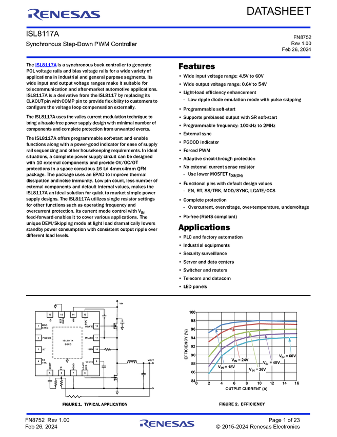 ISL8117AFRZ Synchronous Step-Down PWM Controllers