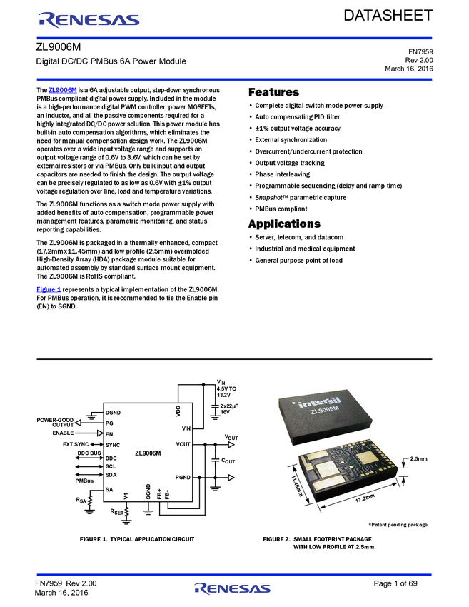 ZL9006MAIRZ Digital DC/DC PMBus 6A Power Module