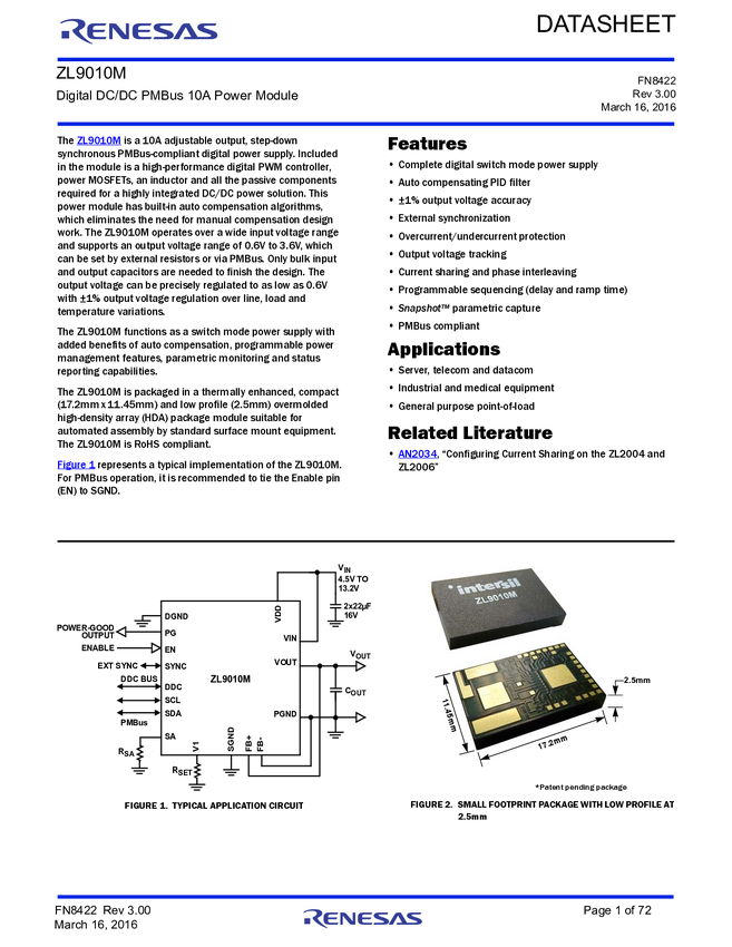 ZL9010MAIRZ Digital DC/DC PMBus 10A Power Module