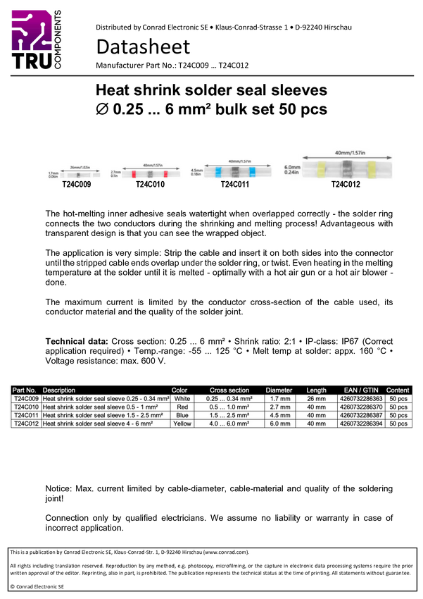 TC-12888424 TRU COMPONENTS TC-12888424 Złącze doczołowe T24C011, z pełną izolacją , 1.5...