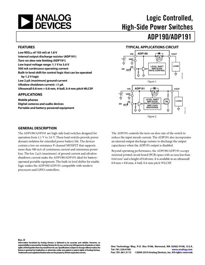 ADP190 ADP191: Logic Controlled, High-Side Power Switches