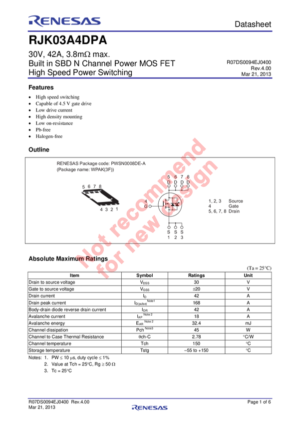 RJK03A4DPA-00#J53 Built In Sbd N Channel Power MOSFET
