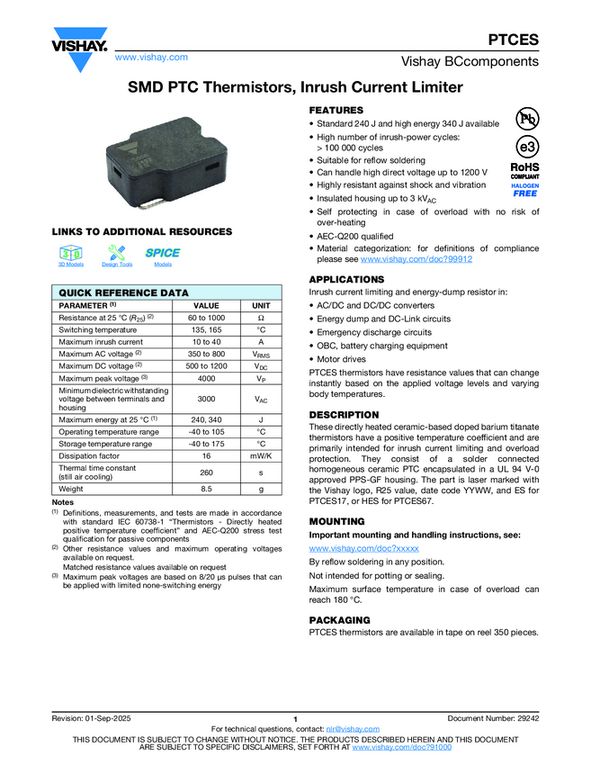PTCES SMD PTC Thermistors, Inrush Current Limiter