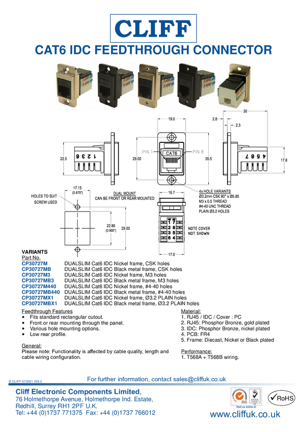 CP30727MB3 Cliff CP30727MB3 Złącze męskie IDC, RJ45 Cat6, 1 szt.